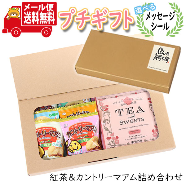 プチギフト お菓子 送料無料 【選べるメッセージシール】ほっと一息 スマイルなカントリーマアム(バニラ)と紅茶 ミニギフト(2種・8コ) お菓子 詰め合わせ ミニギフト (omtmb8581t)
