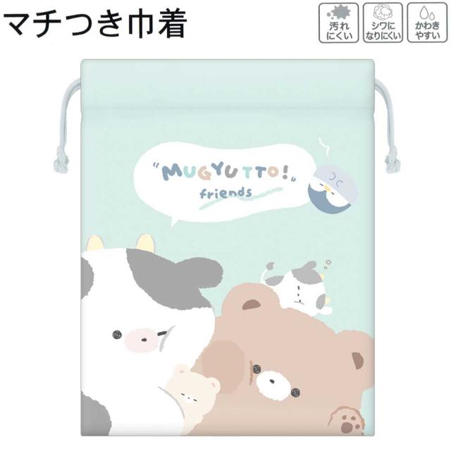 メール便 OK マチつき巾着 女の子 向け むぎゅっとふれんず ウシ クマ 汚れにくい シワになりにくい かわきやすい ポリエステル クーリア おしゃれ で かわいい 文房具