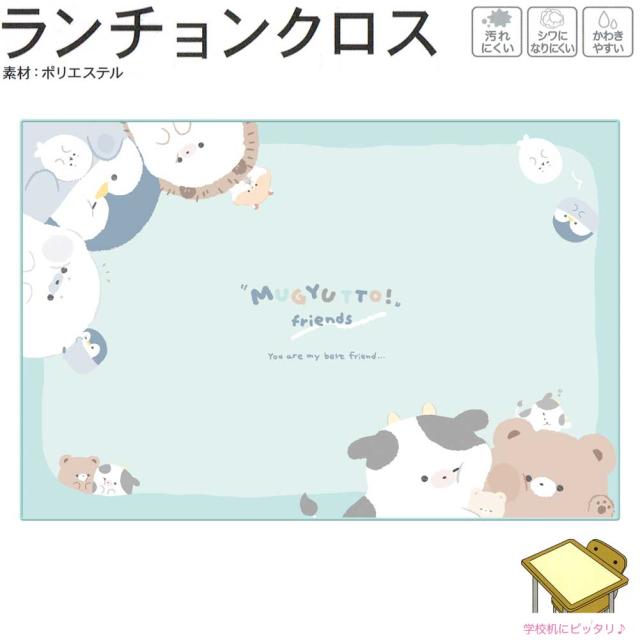 メール便 OK ランチクロス ランチョンクロス 女の子 向け むぎゅっとふれんず ウシ クマ ペンギン 汚れにくい シワになりにくい かわきやすい ポリエステル 長方形 クーリア