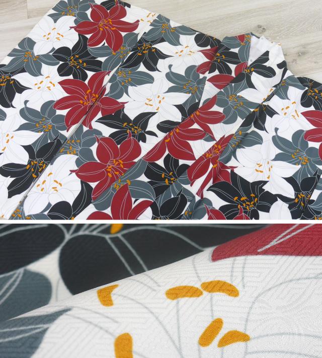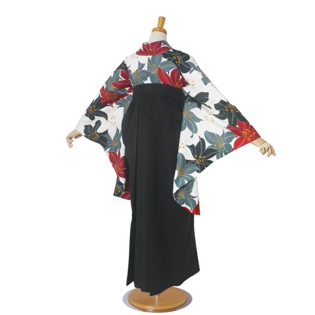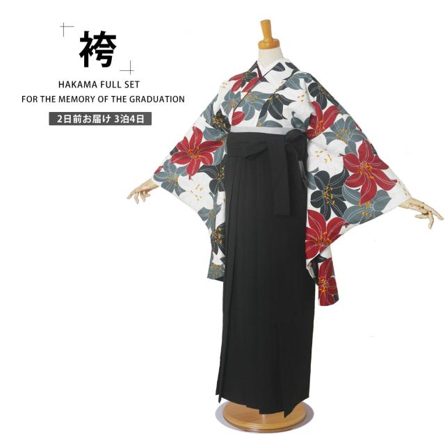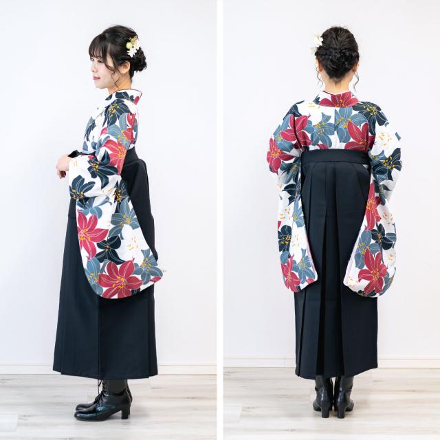二尺袖 着物 袴 レンタル フルセット 【貸衣装 卒業式 大学生】【袴Sサイズ】 クール ユリ尽くし 赤 黒 白 グレー