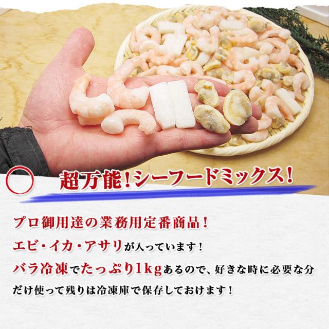 【超万能】業務用シーフードミックス えび いか あさり 1kg(NET850g) 冷凍便 バーベキュー BBQ ギフト お取り寄せグルメ 食品