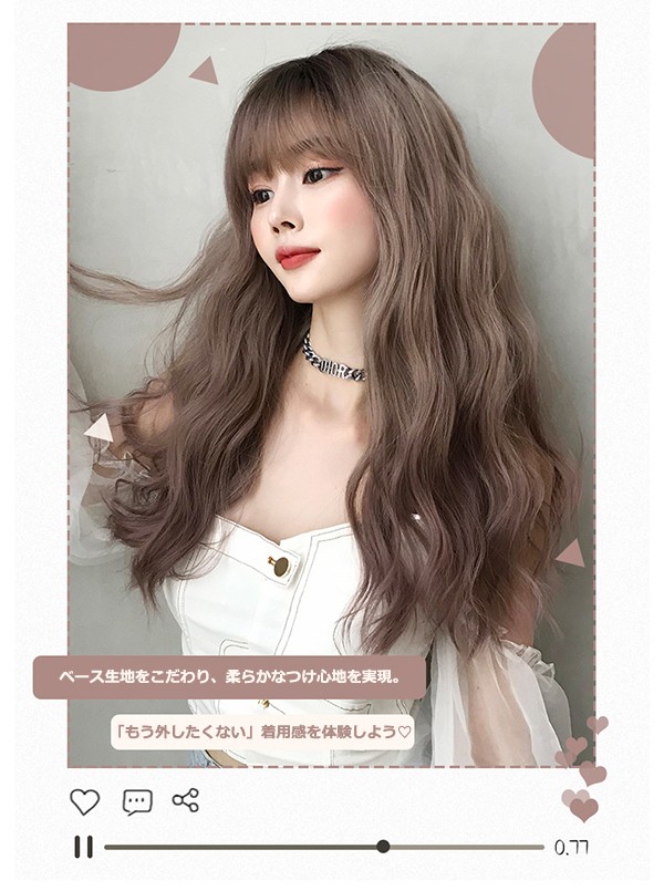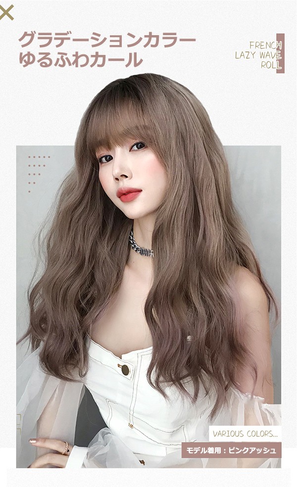 スタイル:ナチュラルな超高品質ウィッグ。自然な透け感と空気感のある前髪「エアリーシースルーバング」適度な透け感で地毛や肌との馴染みが自然な仕上がりです。つむじの分け目自由に分けられます。毛先に緩め大きな波巻きをつけることで、ドレープ性が抜群、ウィッグにありがちな不自然さを無くしました! 自然な立体感とボリュームも演出♪重すぎず軽すぎない程よい長さとデザイン。大人感出しちゃいます。色んなファッションとのコーディネーションができ、まさにマストアイテムです。