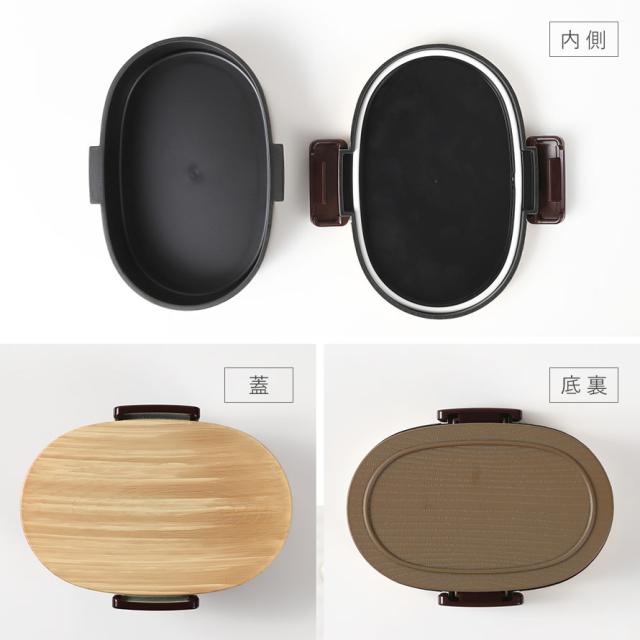 木目デザインとくすみカラーの掛け合わせ、わっぱ風のフォルムがモダンなお弁当箱。和食でも洋食でも美味しそうに見え、食べるのも作るのも楽しみになります。蓋にはパッキンが付いていて、汁もれしにくいタイト式。通学や通勤で移動して傾いても安心です。仕切り付きでご飯やおかずが分けられて上手に詰めやすい!一段弁当なのでかさばらず持ち運びも楽ちん。