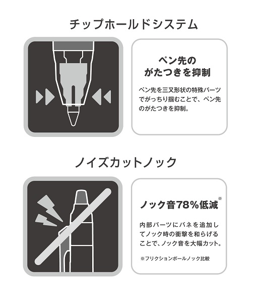 樹脂+ラバー素材で滑りにくく快適な筆記が可能な「ノック式フリクションボール0.5mm」