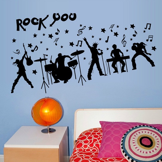 ウォールステッカー ロックスター バンド かっこいい 壁紙シール 音符 モダン シルエット 人気 軽音楽 黒 矢印 星 ギター 子供部屋