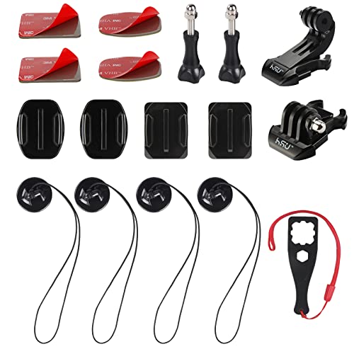 HSU ヘルメットマウント16 in 1 アクセサリーセット カメラストラップ付きのアクションカメラ用マウントキット GoPro Hero11/10/9/8/7/6/5対応 及び他のアクションカメラ