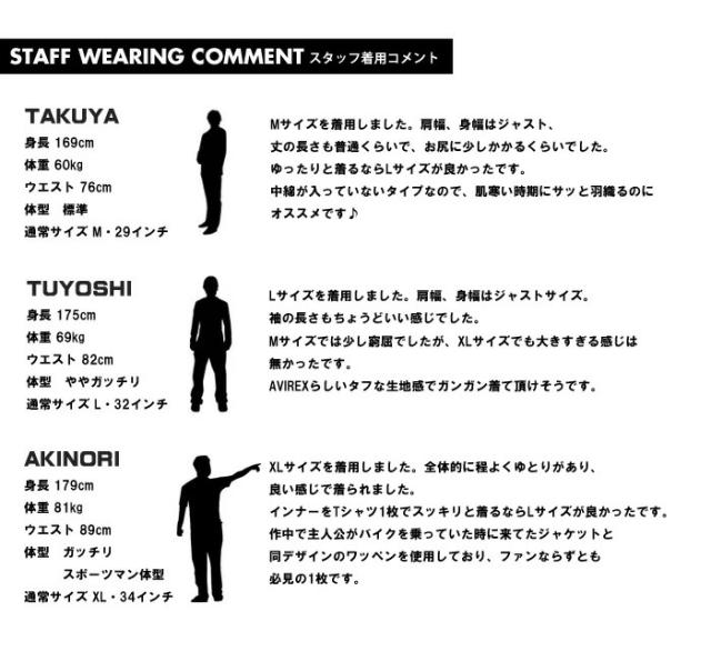 AVIREX【アヴィレックス】 レザーウェア、カジュアルウェアブランド。1937年、アメリカ空軍への戦闘服の サプライヤーとしてアヴィレックスの前身エアロ・レザー社を創立。厳しい軍規定を クリアした無駄のない機能的な製品は高い評価を得る。1970年代中盤に復刻された 第二次世界大戦時のフライトジャケットなど数多くの人気アイテムがある。 |