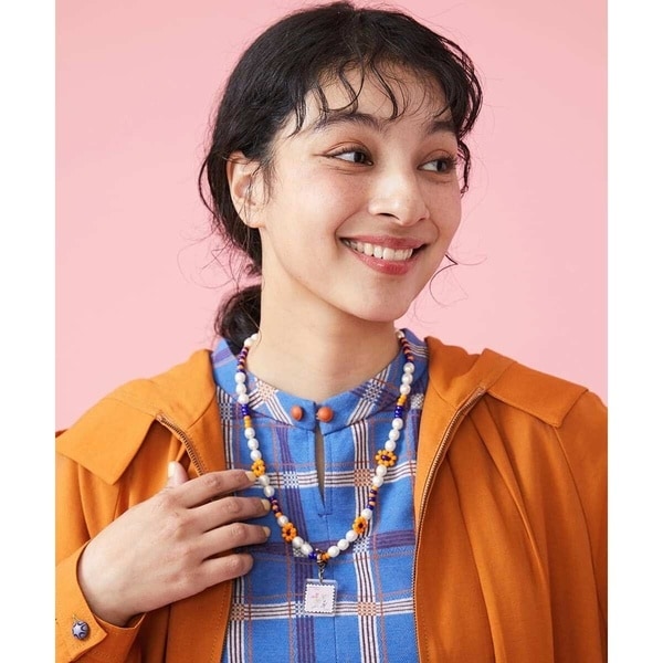 光沢感が上品な淡水パール調パーツとキュートなカラーのビーズを組み合わせたデザインネックレス。きれい目なコーディネートからカジュアルスタイルのアクセントとしても活躍してくれます。取り外し可能な切手デザインモチーフのチャーム付きでアレンジ使いできるのも嬉しいポイント。少しアンティークな金具を合わせてどこかレトロ感も感じるニュアンスが素敵なホコモモラらしいネックレスです。