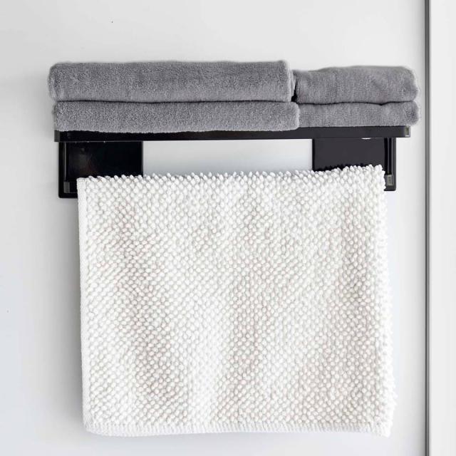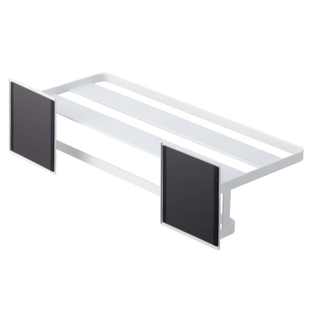お風呂の中にマグネットで設置できる棚です。幅約45.5cmと幅広なのでバスタオルとフェイスタオルを一緒に置けて、ホテルのタオル置きのようにすっきりと片付きます。