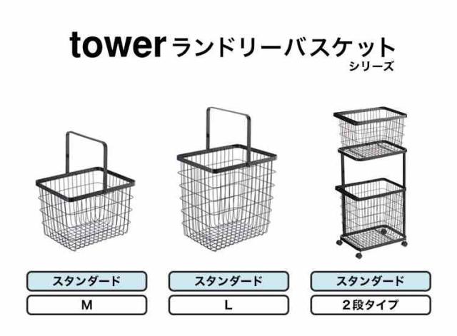 ランドリーバスケットキャスター付き ワイド&ロー タワー 山崎実業 洗濯カゴ ワイヤーバスケット 洗濯物かご ランドリー収納 脱衣カゴ 収納 ハンドル キャスター付き スムーズ 移動楽 ドラム式洗濯機 扉 ぶつからない 6627 6628 tower シンプル ホワイト ブラッ