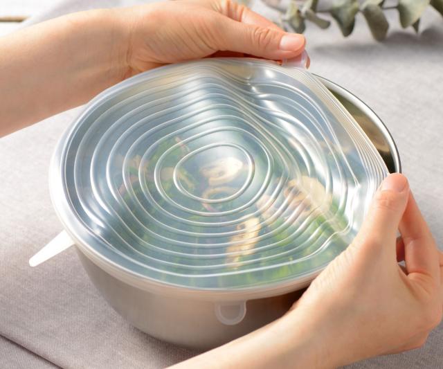 繰り返し使えるシリコーン製のラップです。柔らかい素材で様々な形状にフィットし、洗って何度でもご使用いただけます。使い捨てラップや保存袋のゴミが減るのでエコで経済的です。