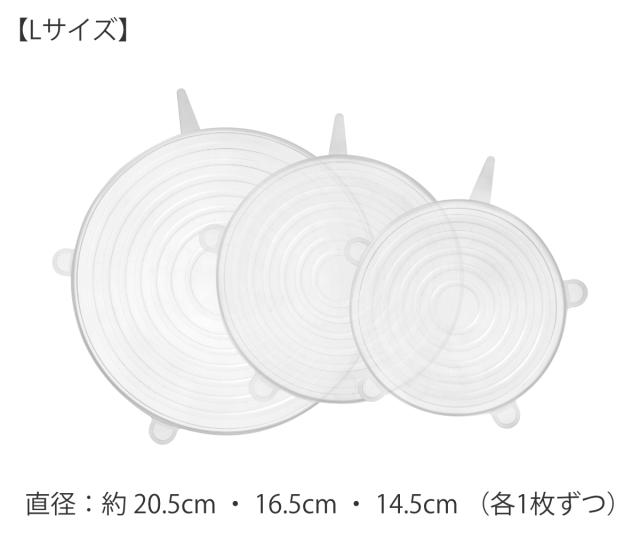 シリコンラップ L 3枚セット 丸型 ラクーニ ( エコラップ 食品ラップ ラップ シリコン蓋 電子レンジ対応 食洗機対応 抗菌加工 14.5cm 16.5cm 20.5cm 冷凍 冷蔵 円形 カバー 耐熱 シリコン製 シリコーン製 便利グッズ )