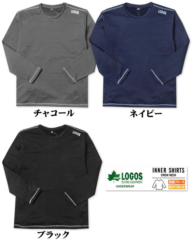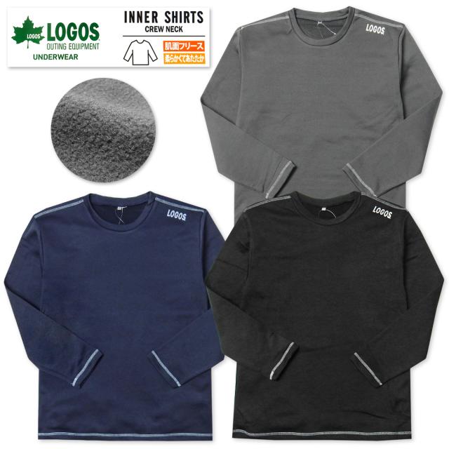 【送料無料】紳士 メンズ 裏フリース 長袖 インナー シャツ LOGOS 肌着 下着 丸首 あったか 厚地 ストレッチ yg-1787【メール便対応】