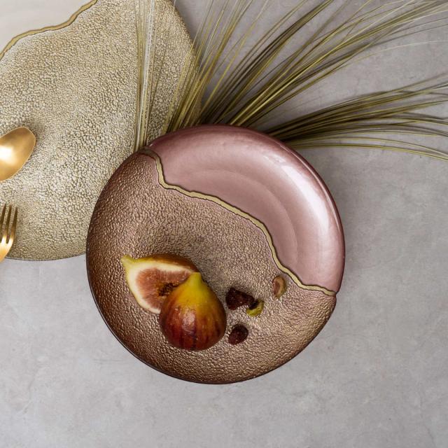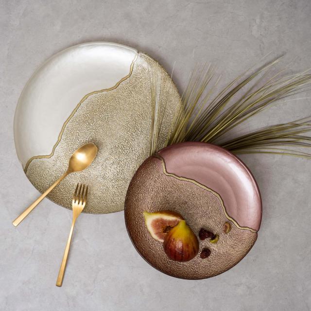 ●金継ぎをイメージしたゴールドのラインがラグジュアリー感抜群のガラスプレート21cmです。