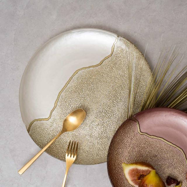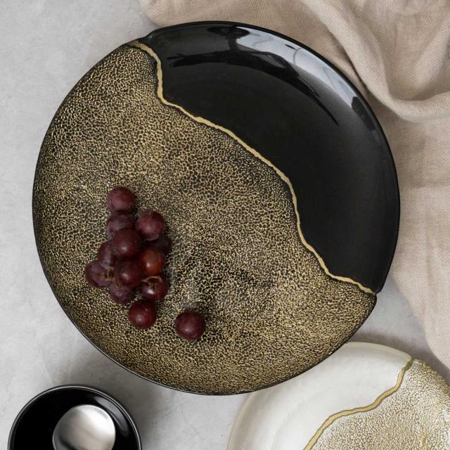 ●金継ぎをイメージしたゴールドのラインがラグジュアリー感抜群のガラスプレート28cmです。
