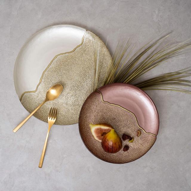 プレート 28cm Bijou ビジュ ガラス ( 大皿 ガラスプレート ガラス製食器 皿 お皿 平皿 盛皿 パーティー おもてなし ホームパーティー お祝い テーブルコーディネート おしゃれ 金継ぎ風 高級感 )