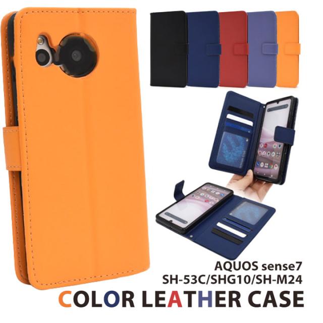 AQUOSsense7 SH-53C SHG10 SH-M24 カラーレザー手帳型ケース ライトブルー レッド ブラック ブルー オレンジ カバー アクオスセンス7 メール便送料無料