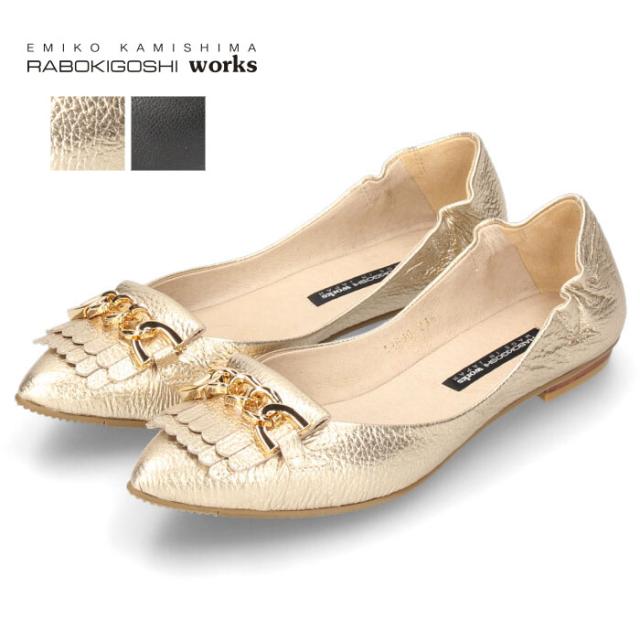RABOKIGOSHI works ラボキゴシ ワークス パンプス ぺたんこ 12690 ブラック プラチナ ゴールド フラットシューズ 本革 レディース 靴 日本製