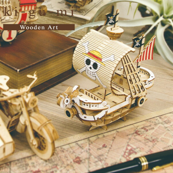 メール便送料無料 木製立体パズル ki-gu-mi ワンピース ゴーイング・メリー号 エーゾーン 木組 立体パズル 木製 工作 おもちゃ インテリア プレゼント ギフト