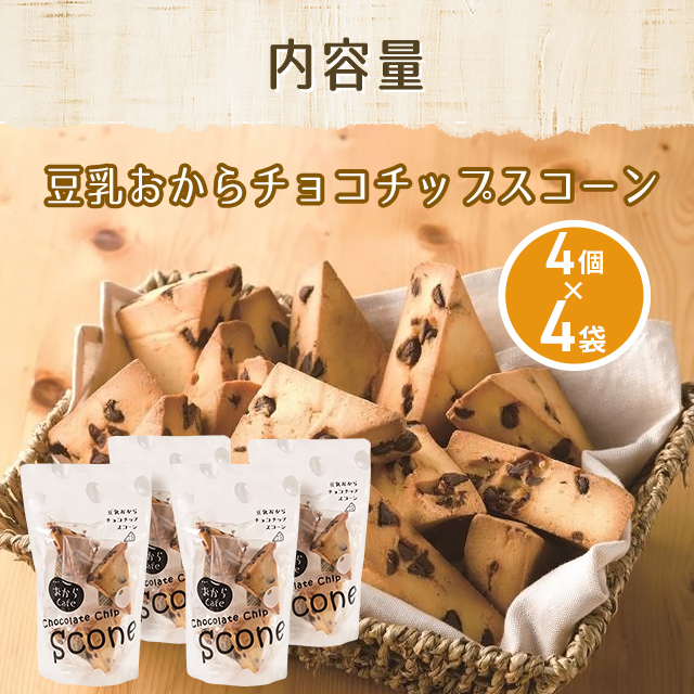 おからカフェ 豆乳おからチョコチップスコーン 16個(4個×4袋)スイーツ 洋菓子 おやつ スコーン 送料無料