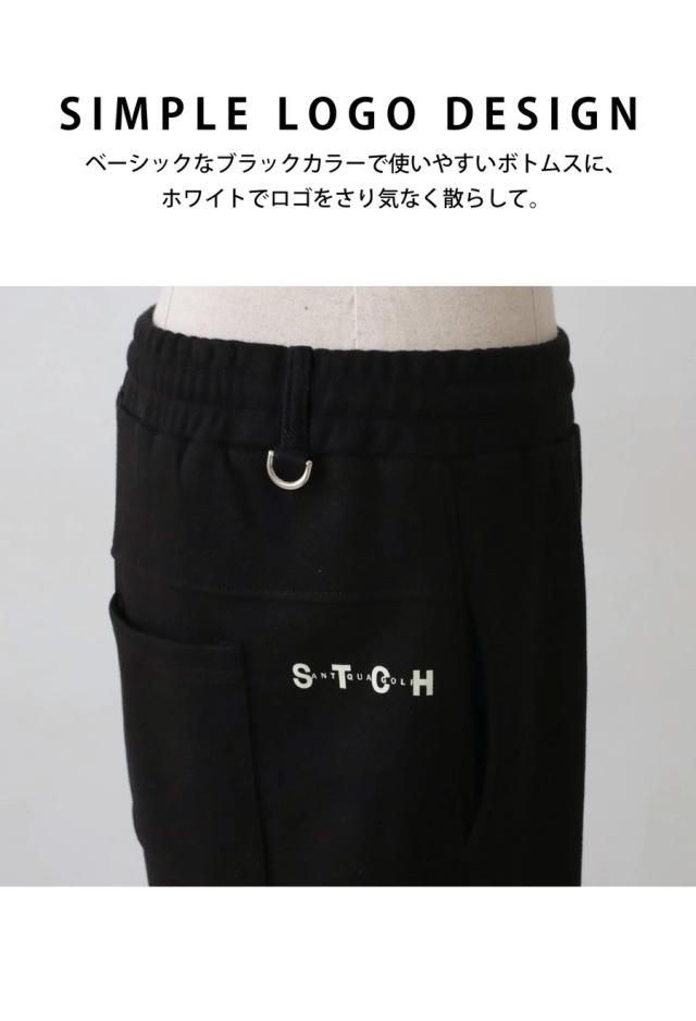 zst-00003z パンツ ボトムス ロング ストレート 長ズボン セットアップ 無地 ロゴ ワンポイント バックデザイン ゆったり ウエストゴム Dカン ポケット付き ロングパンツ ユニセックス