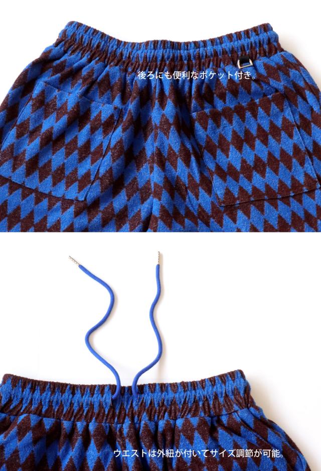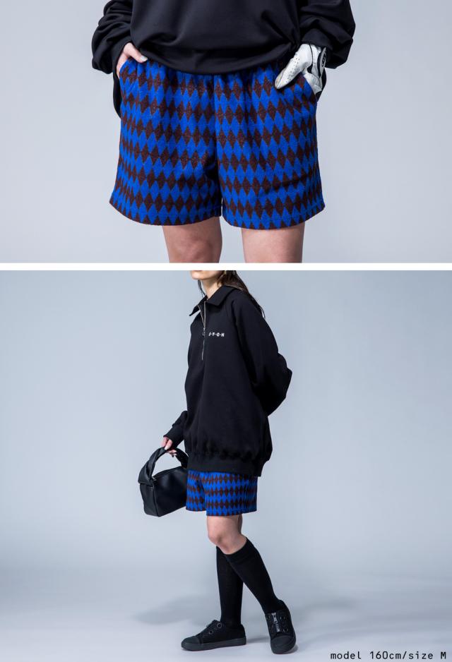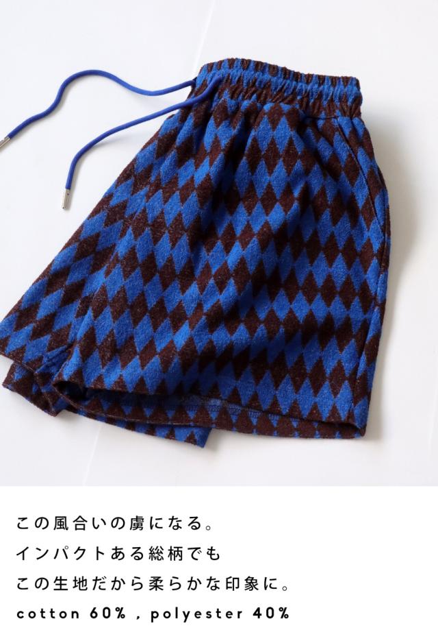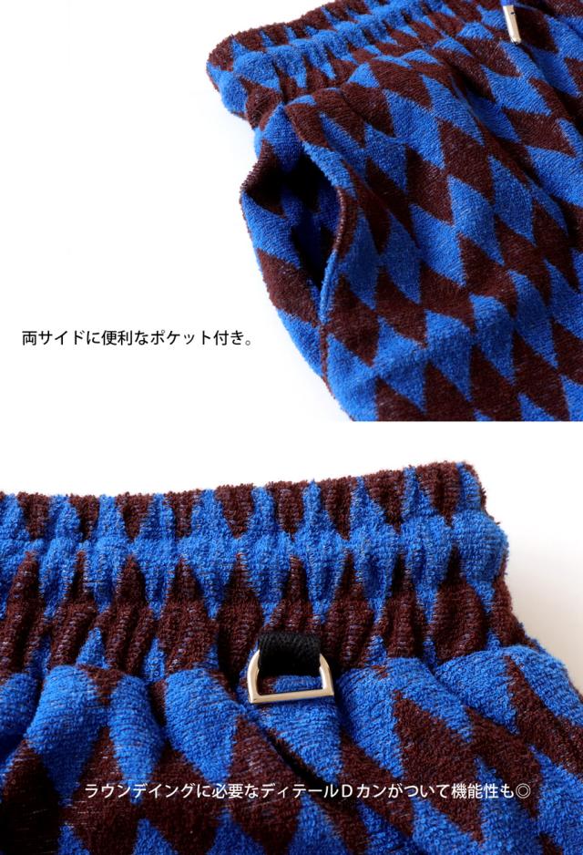 zst-00010z パンツ ボトムス ひざ丈 短パン 柄パンツ 柄 ダイヤ柄 パイル ゆったり セットアップ ショートパンツ 半ズボン 総柄 タオル地 シンプル Dカン ポケット付き ユニセックス