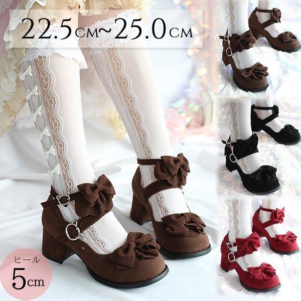 【レビュー投稿で+5%還元】ロリータ パンプス 厚底 秋冬 ロリィタパンプス ゴスロリ 甘ロリ おでこ靴 ロリィタ靴 フリルリボン スエード ヒール5センチ メイド靴 可愛い 女の子 日常 文化祭 イベント ストラップ ガーリー コスプレ 小さいサイズ 大きいサイズ イベント