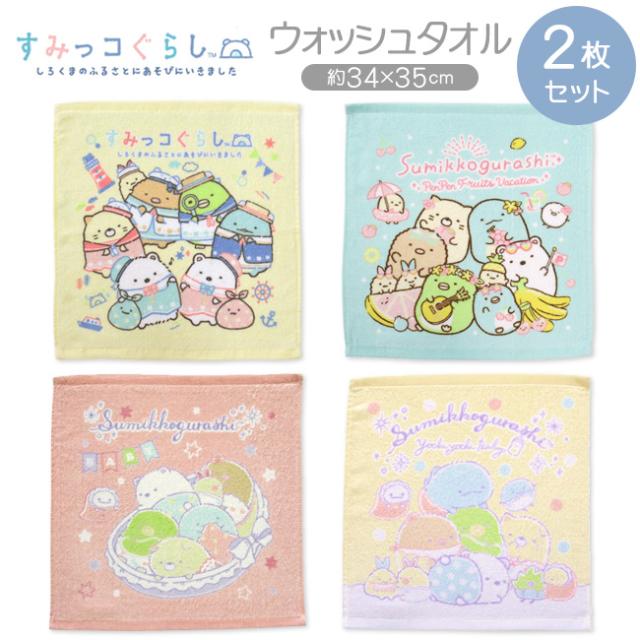 すみっコぐらし ウォッシュタオル 2枚セット キャラクター グッズ すみっこ こいぬ ハンドタオル タオルハンカチ タオル 子供用 キッズ 赤ちゃん 幼稚園 保育園 準備 サンエックス 入園 入学 女の子 ポイント消化