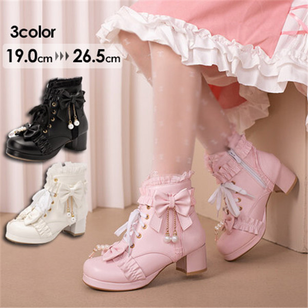 【レビュー投稿で+5%還元】ロリータ靴 レディースシューズ パンプス メイド靴 レース リボン 可愛い 姫様 お嬢様 女の子 おしゃれ 日常 文化祭 イベント 美脚 お茶会 通学 コスプレ 小さいサイズ19.0 大きいサイズ26.5 黒 白 ピンク 20.5 21.0 21.5 25.0 25.5 26.0