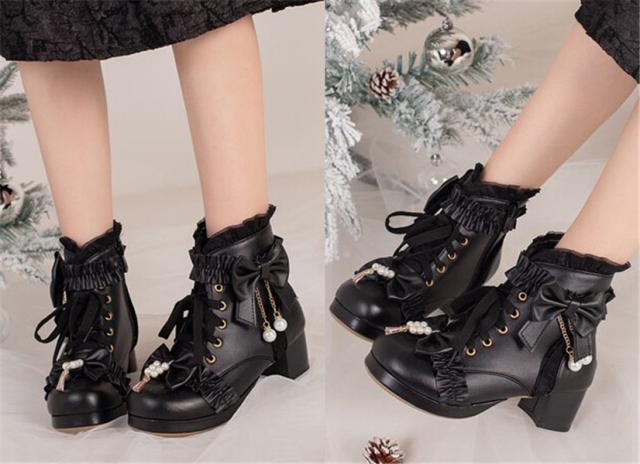 【商品名】ロリータ靴 レディースシューズ パンプス メイド靴 レース リボン 可愛い 姫様 お嬢様 女の子 おしゃれ 日常 文化祭 イベント 美脚 お茶会 通学 コスプレ 小さいサイズ19.0 大きいサイズ26.5 シューズ 黒 白 ピンク 20.5 21.0 21.5 25.0 25.5 26.0 di907c0c0l9