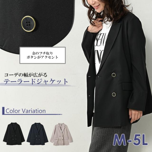 大きいサイズ レディース テーラードジャケット 長袖 ダブルボタン ポケット ブレザー アウター M/LL/3L/4L/5L ゆったりサイズ ぽっちゃり女子 プラスサイズ