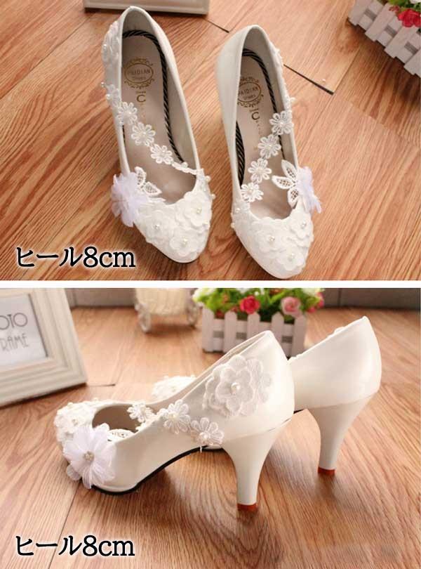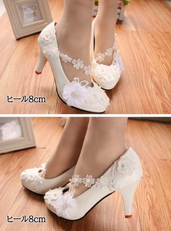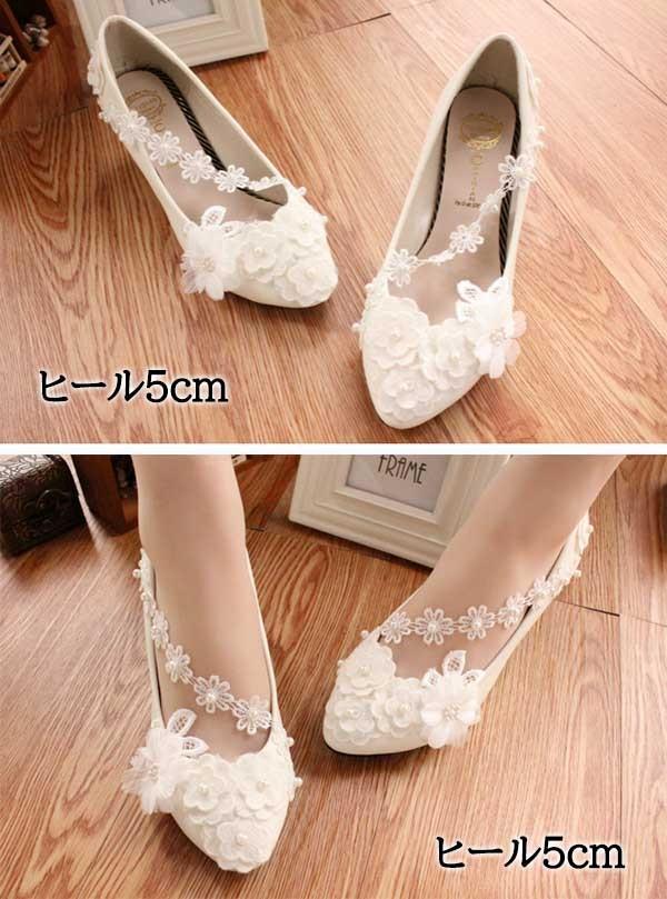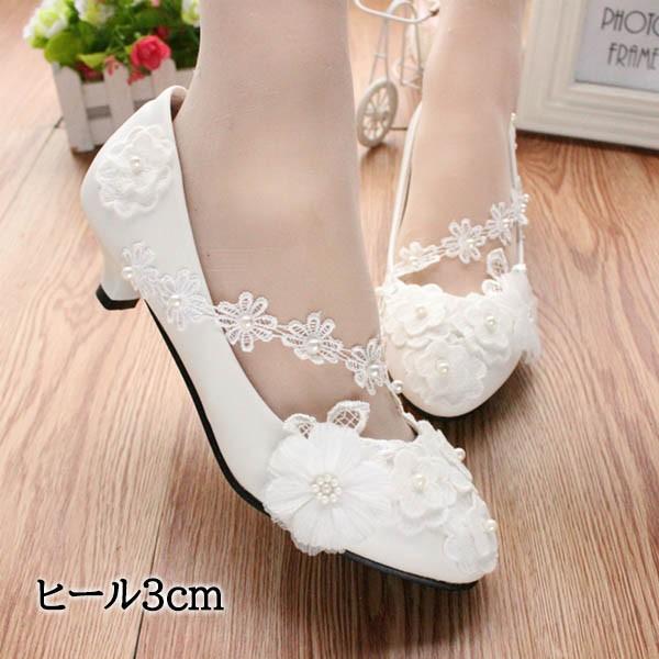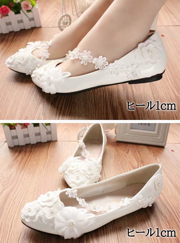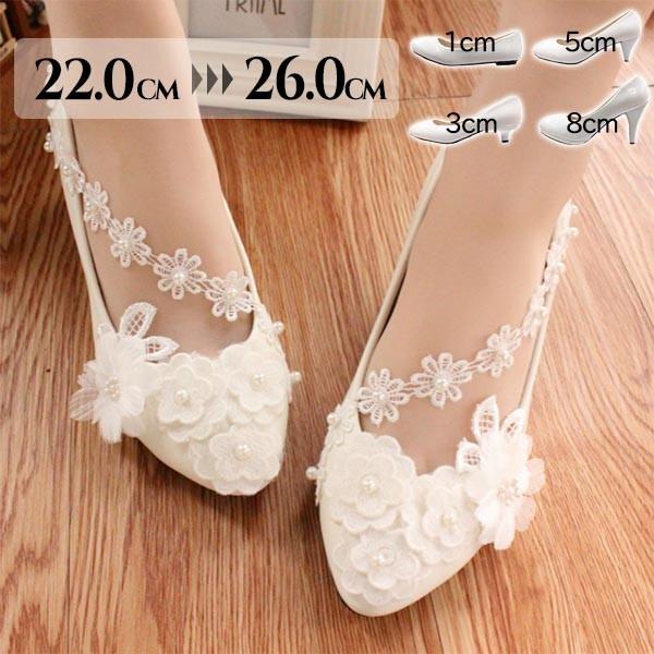 ブライダルシューズ ウエディングシューズ ブライダル シューズ パンプス ストラップ ブライダルシューズ ぺたんこ 白い レース ハイヒール 飾り 花 パーティー 美脚 ビーズ 結婚式 発表会 22.0〜25.5/26.0 di128x1x1q3