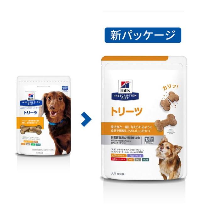 [1] プリスクリプション・ダイエット〈犬用〉 c/d マルチケア、k/d 、l/d 、r/d 、w/d 製品を給与している犬へおやつとして与えることができます。