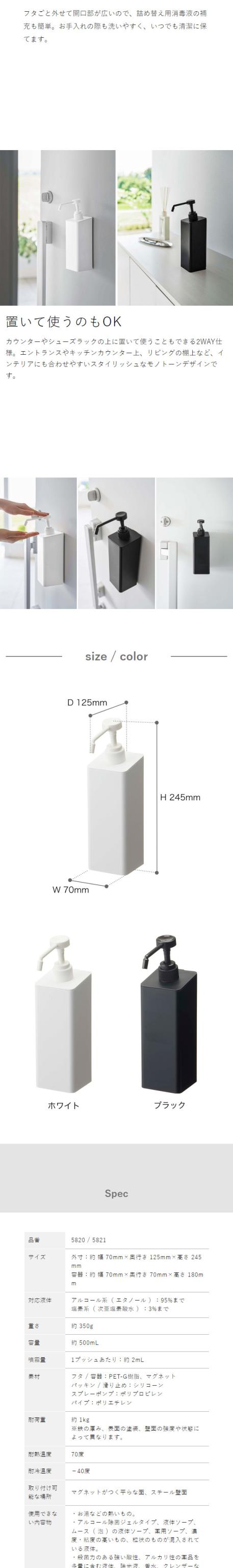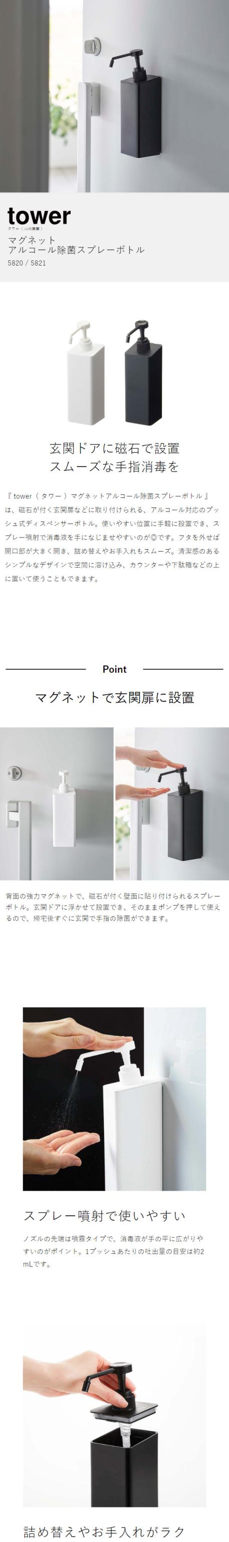 [ マグネットアルコール除菌スプレーボトル タワー ]山崎実業 tower スプレー マグネット 消毒液 詰め替えボトル 磁石 ディスペンサー 除菌スプレー 詰め替え容器 除菌対策 玄関ドア 浮かせる おしゃれ yamazaki ブラック ホワイト 5820 5821