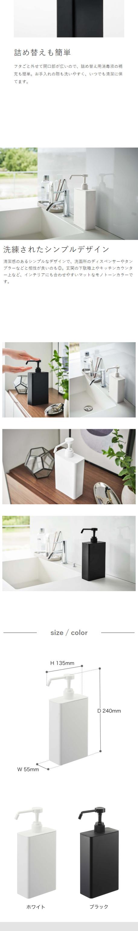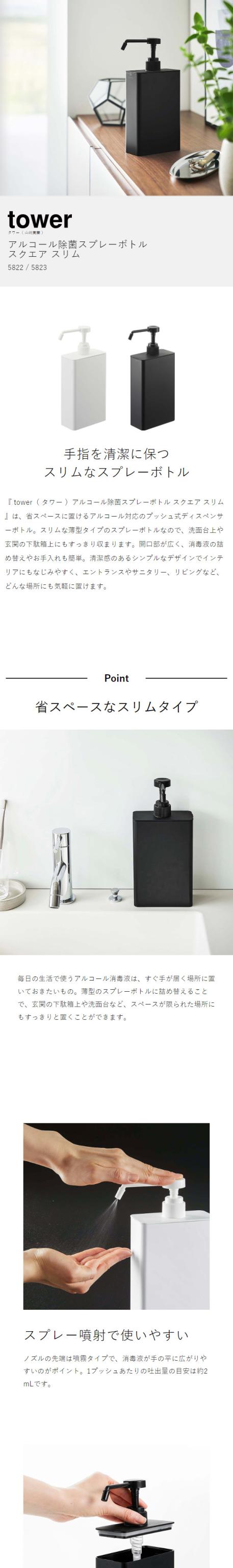 [ アルコール除菌スプレーボトル スクエア タワー スリム ]山崎実業 tower スプレー ボトル 消毒液 詰め替えボトル ディスペンサー 除菌スプレー 詰め替え容器 除菌対策 洗面所 玄関 シンプル おしゃれ yamazaki ブラック ホワイト 5822 5823