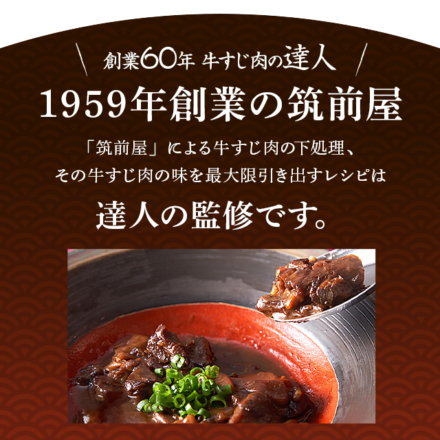 商品名 牛すじ肉の達人 筑前屋 国産牛すじ どて煮 九州熟成麦味噌 140g×4袋 容量 140g×4袋 原材料名 牛すじ(国産)、味噌(国内製造)、還元水飴、醤油、砂糖、米発酵調味料、蛋白加水分解物、澱粉、醸造酢、にんにく、食塩、鰹節エキス、生姜、酵母エキス、唐辛子、椎茸エキス/調味料(アミノ酸等)、(一部に小麦・大豆・豚肉・牛肉を含む) アレルギー特定原材料 小麦 加工地 日本 賞味期限 商品の発送時点で、121日以上あるものをお届けいたします 保存方法 常温
