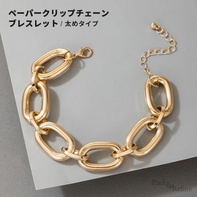 【メール便送料無料】太め ペーパークリップ チェーン ブレスレット ゴールド 金 バングル ラウンド トレンド 軽い 軽量ブレス SNS インスタ トレンド 男女兼用 ユニセックス ペアアクセサリー ブレスレット レディース メンズ 人気