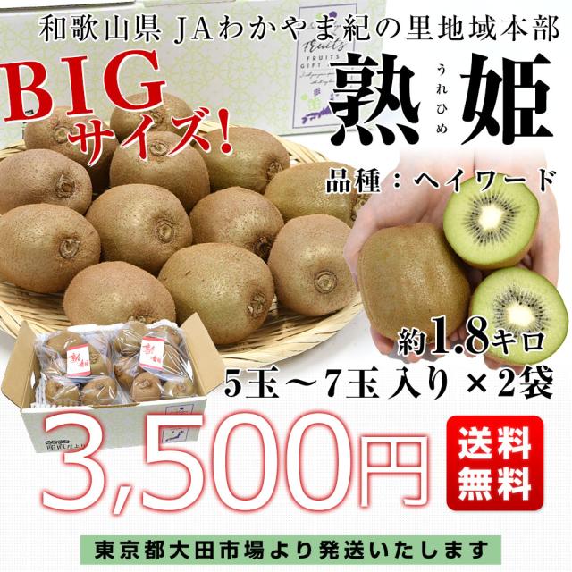 和歌山県産 JAわかやま紀の里地域本部 熟姫(うれひめ) 約1.8キロ(5玉から7玉入り×2袋) 送料無料 キウイフルーツ グリーンキウイ ヘイワード 市場発送【発送時期:カート内に記載しております】