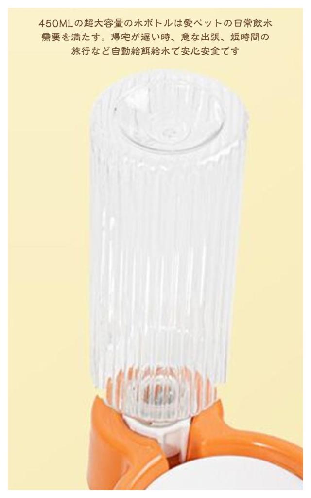 | フードやお水などを入れるかわいいペットボウル 450MLの超大容量の水ボトルは愛ペットの日常飲水需要を満たす。帰宅が遅い時、急な出張、短時間の旅行など自動給餌給水で安心安全です。 自動給水 サイフォンの原理で水を自動的に補給することができます。より新鮮な水を保ちます。。 分離式設計 ボウルとボトルは取り外し可能、お手入れも簡単です。飼い主が毎日ペットに餌をやるのに便利です。食べ残しなどが落ちやすいのでとっても洗いやすいです。 調整可能ボウル ボウル底の固定構造設計により、好みの角度を調整できます | |
