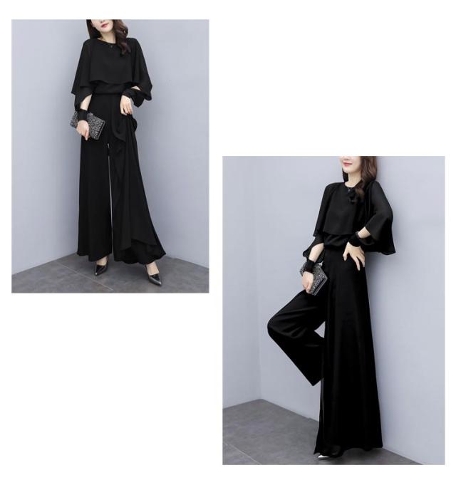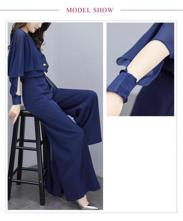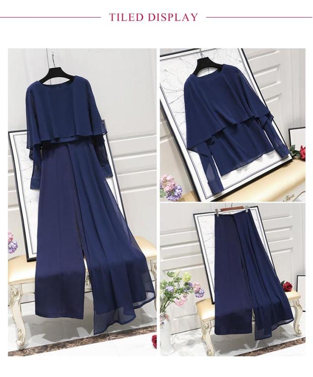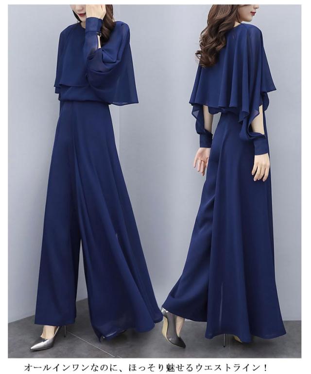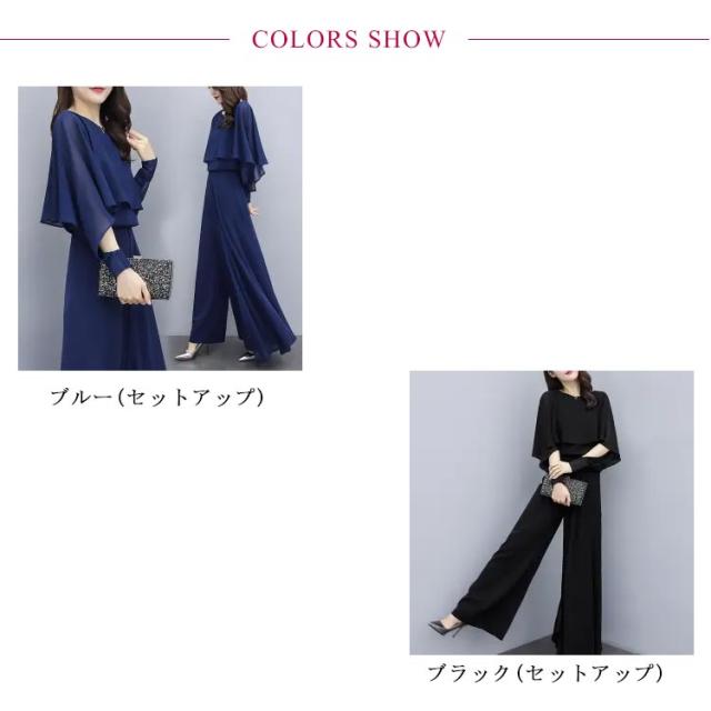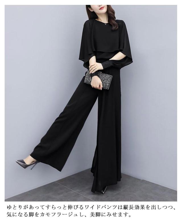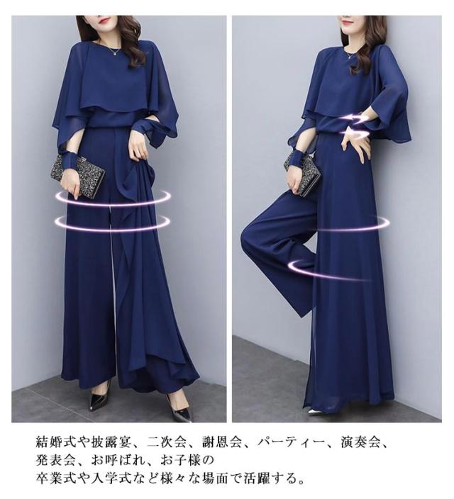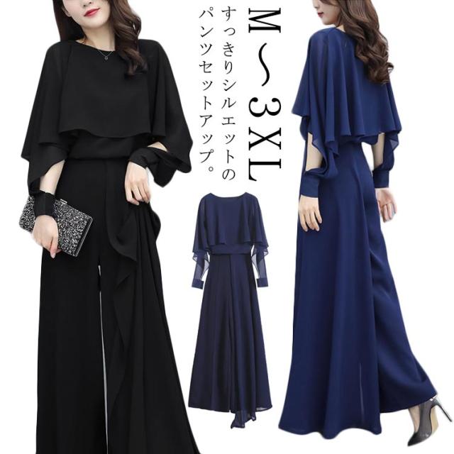 パンツスーツ セットアップ レディース シフォン パンツドレス 2点セット 送料無料 ワイドパンツ パーティードレス ロング パンツ ブラウス シャツ フォーマル 春 夏 秋 大きいサイズ スーツ オフィス OL 通勤 きれいめ カジュアル オールインワン ウエストゴム入り