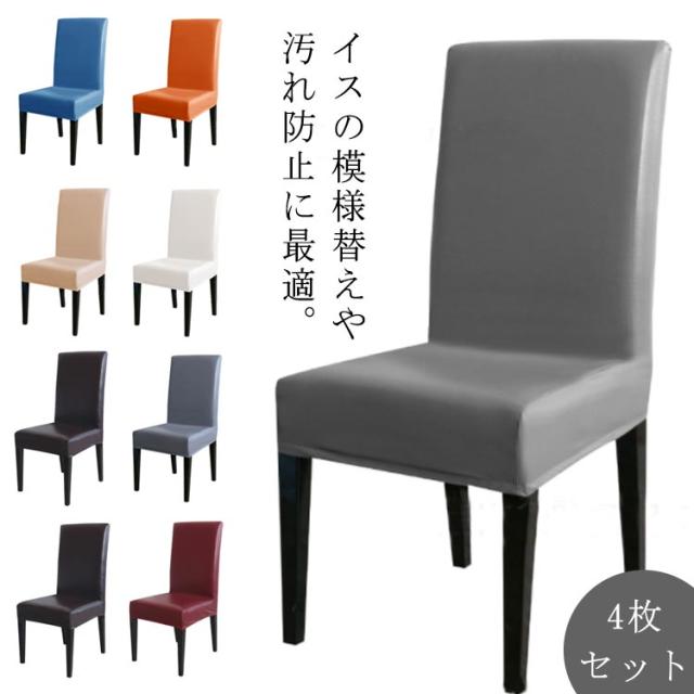 選べる9色 4枚セット PUレザー椅子カバー イスカバー レザー ダイニング椅子カバー 合皮 伸縮素材 超弾力 ストレッチ 取り外し簡単 背もたれ かけるだけ フィット チェアカバー 革 皮 座面 座椅子カバー 水洗え