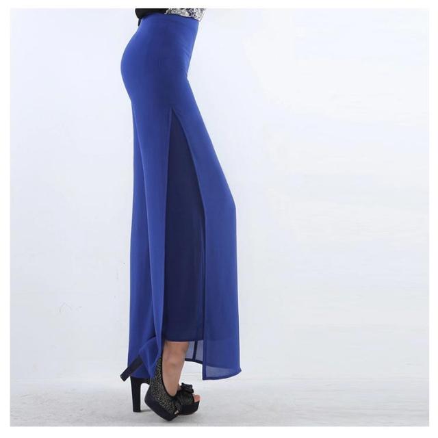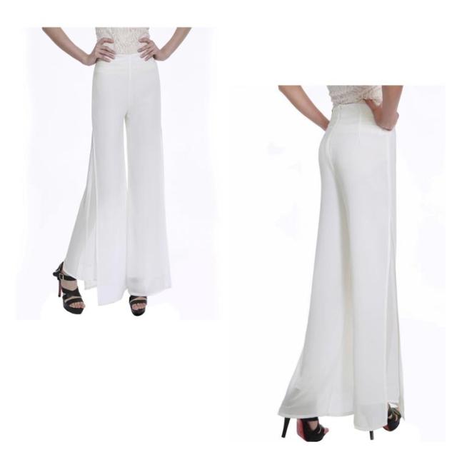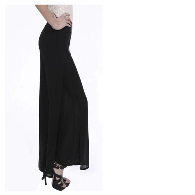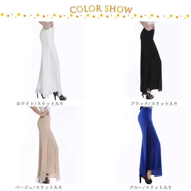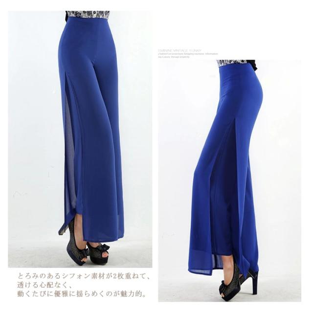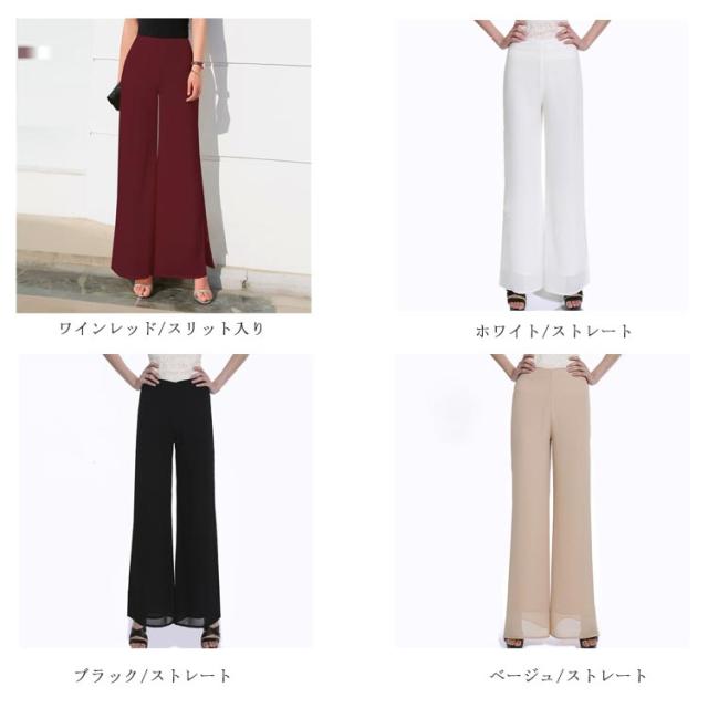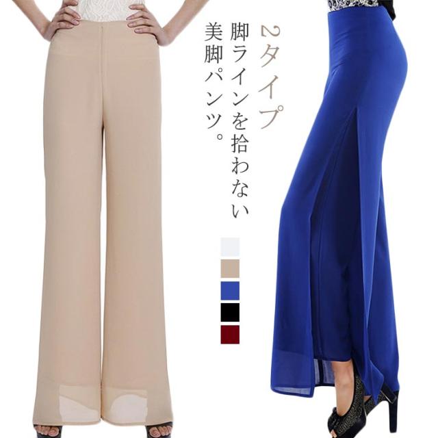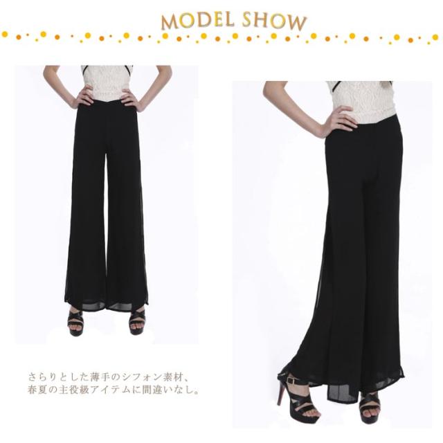 2枚重ねパンツ フォーマルパンツ 黒 白 ステージ衣装 レディース ワイドパンツ ガウチョパンツ 送料無料 ロング ハイウエスト シフォン サイドスリット ストレート ゆったり 美脚 薄手 春夏