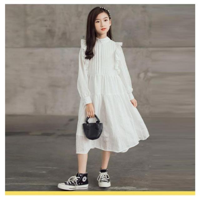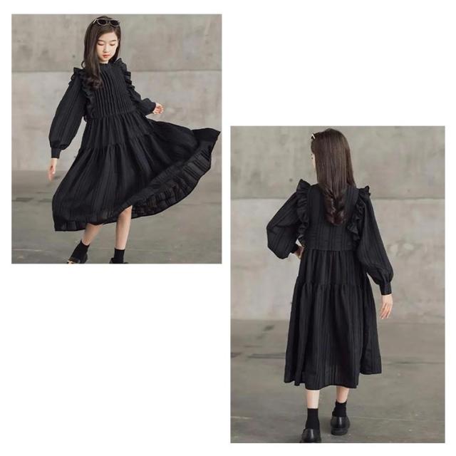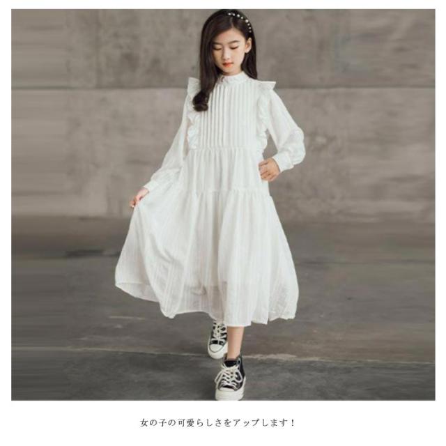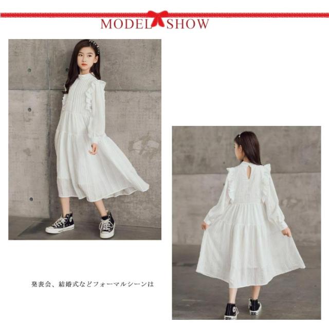 女の子 ワンピース 長袖 フォーマル ブラック ホワイト 肩フリル付き 子供服 ジュニア 春秋 子ども カジュアル キッズ ガールズ 普段着 お出かけ デート 入学式 通学 結婚式 発表会 パーティー お祝い 冠婚葬祭 120 130 140 150 160 165 お誕生日 プレゼント
