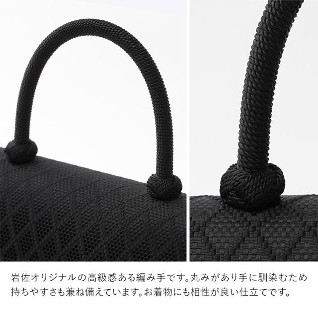 ・岩佐オリジナルの高級感ある編み手です。丸みがあり手に馴染むため持ちやすさも兼ね備えています。お着物にも相性が良い仕立てです。