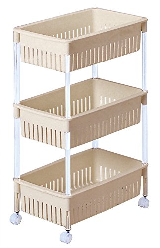 サンコープラスチック すき間収納 ベージュ 約幅29*奥行47*高さ70cm メッシュワゴン 3段 ワイドロング