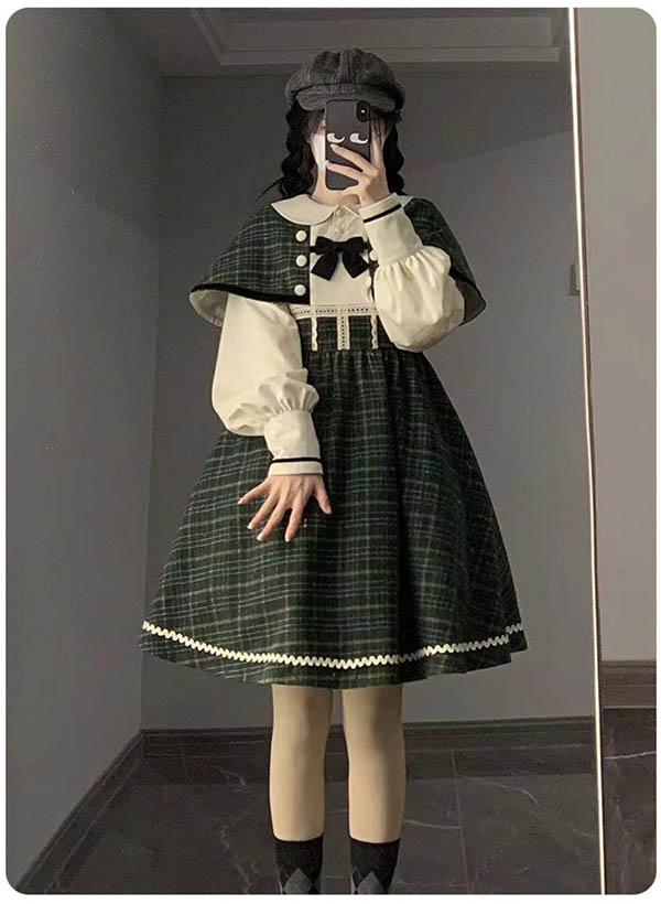 長袖ワンピース ロリータ lolita コスチューム 春服レディース パーティー 発表会 ワンピース かわいい おしゃれ 学園祭 文化祭 イベント 可愛い レディース Aライン グリーン dg033z7z7q3