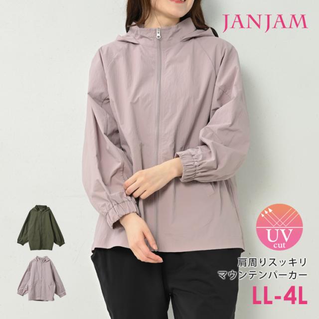 大きいサイズ レディース マウンテンパーカー UVカット メール便対応 長袖 ジップアップ フーディー アウター LL/3L/4L ゆったりサイズ ぽっちゃり女子 プラスサイズ