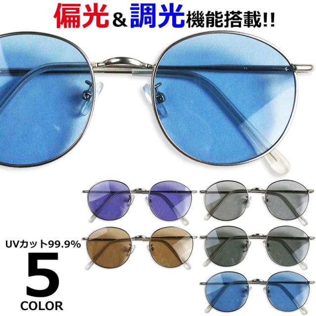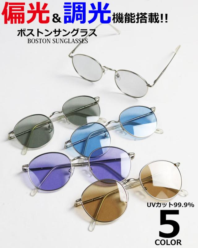 偏光 調光 サングラス メンズ レディース 伊達メガネ UVカット ボストン ウェリントン 偏光サングラス 調光サングラス めがね 眼鏡 カラーレンズ メタルフレーム