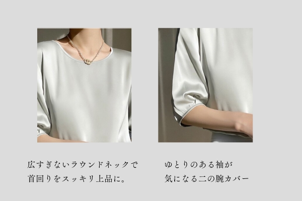 - 久しぶりに会った友人達から「太った」と言われショックを受けて、着痩せする服を探していてこの商品を見つけました。 胸が大きいのですが、袖にボリュームがあるので胸が目立ちません。 ボートネックから鎖骨がちょうどいい感じに見えて、着痩せできている気がします。 昨日も会社に着て行って先輩に褒められました ライトグリーンの色合いもいいですね。