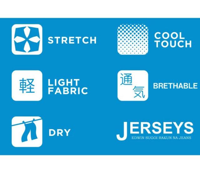 ジャージーズの特徴の「スゴイらく」な伸縮性と柔らかさだけでなく、夏のための機能「軽さ」「速乾性」「清涼性」をプラスした夏のEDWINジャージーズです。